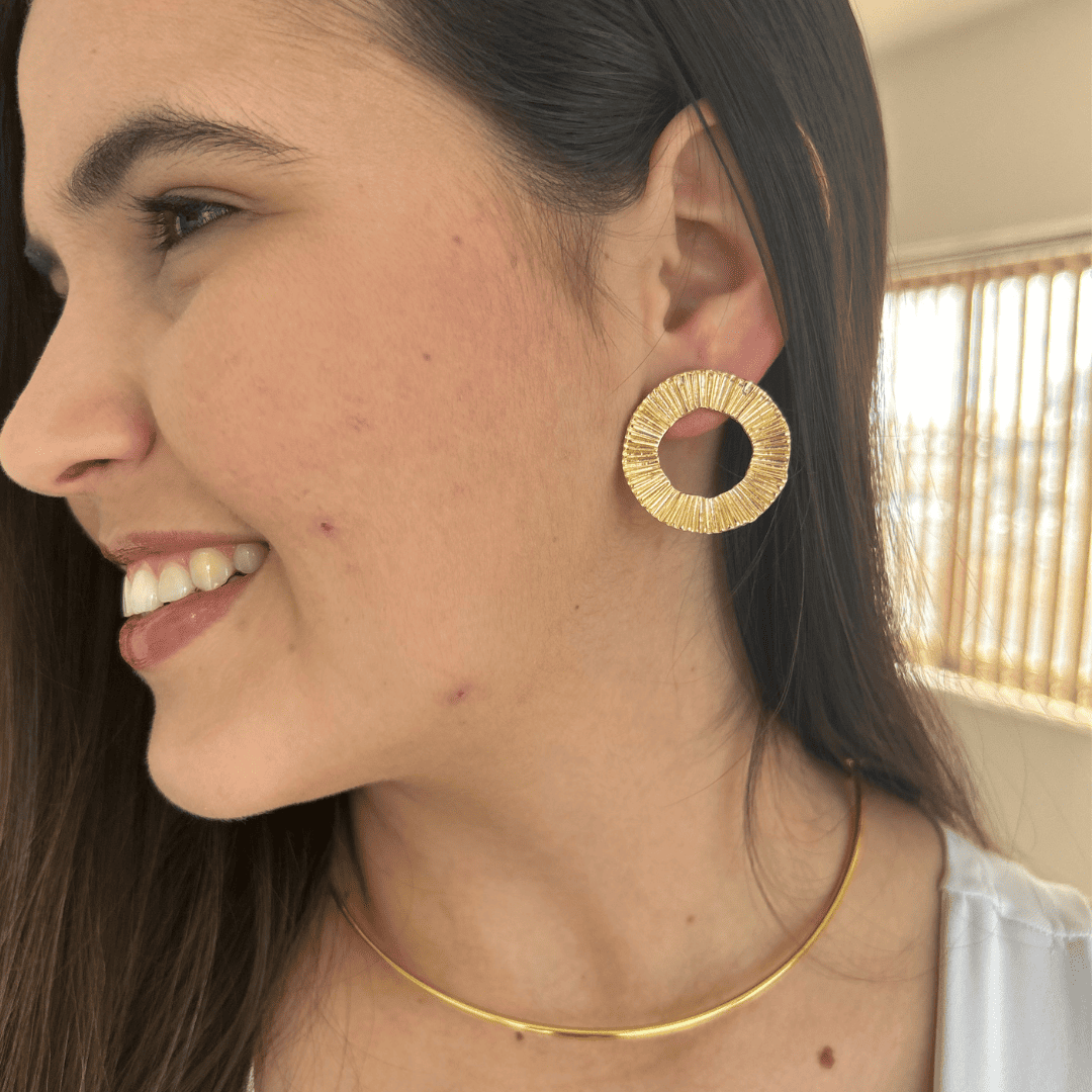 Elegância em cada detalhe! Este brinco redondo combina um design moderno e atemporal com um toque de sofisticação. O círculo externo, com linhas delicadamente gravadas em toda sua extensão, cria um contraste harmonioso com o círculo interno vazado, trazendo leveza e estilo à peça. Versátil e refinado, é perfeito para realçar desde looks casuais até produções mais elaboradas. Um acessório indispensável para mulheres que valorizam beleza e exclusividade.
