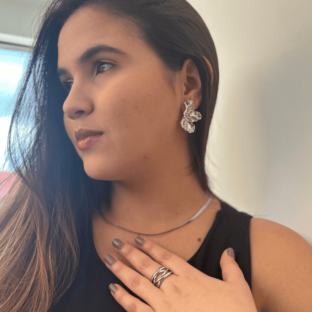 Com design inspirado nas formas orgânicas, ele combina delicadeza e modernidade, perfeito para mulheres que valorizam acessórios únicos. De cor prateada, este brinco é versátil e ideal para complementar desde produções casuais até looks mais elegantes. Seu acabamento minucioso reflete a tendência contemporânea dos designs orgânicos, tornando-o uma escolha necessária para quem busca sofisticação com um toque natural.