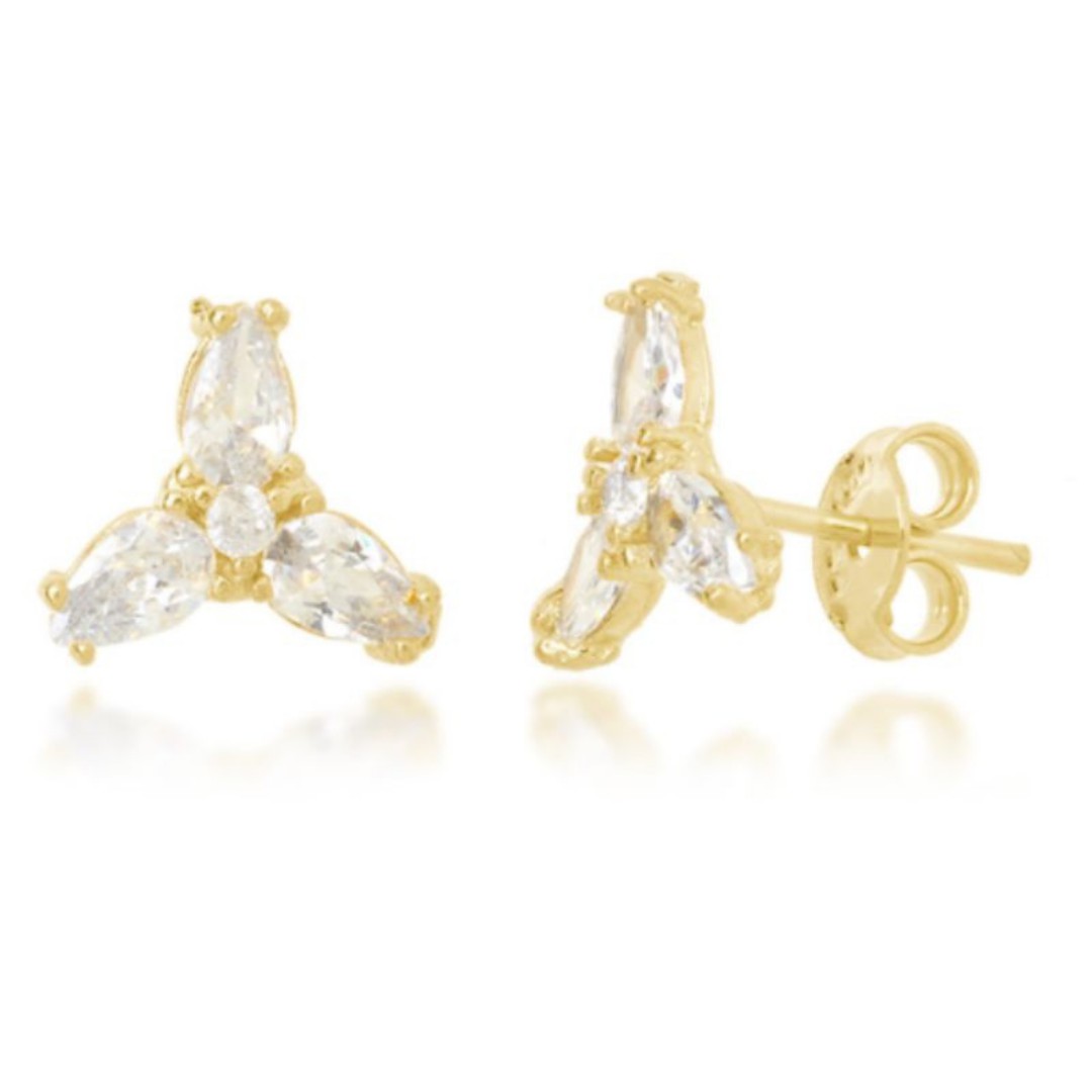 O brinco trio de zircônias traz um design minimalista combinando a imponência do banho dourado com o brilho das pedras em zircônia.