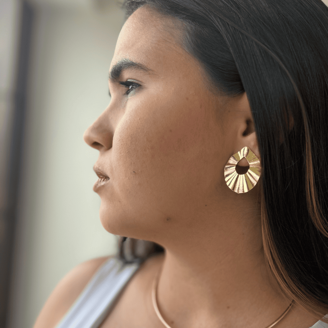 Inspirado na beleza das formas orgânicas, este brinco em formato de gota é uma verdadeira obra de arte. Folheado em ouro 18k, seu design traz detalhes que imitam delicadas dobraduras, conferindo um toque moderno e sofisticado. A gota central vazada adiciona leveza e movimento à peça, tornando-a ideal para mulheres que buscam acessórios únicos e cheios de personalidade. Perfeito para complementar produções minimalistas ou realçar looks mais elaborados com um toque de estilo natural e elegante.