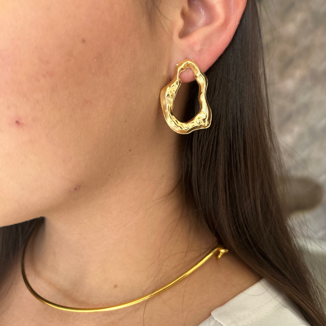Um brinco que é pura arte! Com formato sinuoso e design orgânico, esta peça dourada é a definição de elegância contemporânea. Suas linhas fluídas evocam sofisticação e leveza, sendo perfeito para mulheres que amam acessórios exclusivos e com personalidade. Ideal para complementar desde produções minimalistas até looks mais ousados, este brinco traz um toque moderno e refinado para qualquer ocasião. Realce sua beleza com um acessório que é tendência e atemporal ao mesmo tempo.