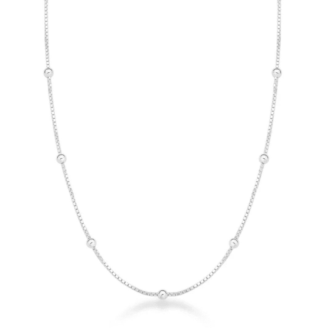 Realce sua beleza com a sutileza minimalista do nosso Colar Alana! Banhado a prata, este colar apresenta uma sequência delicada de bolinhas lisas em toda a sua extensão, criando um visual clean e elegante. Perfeito para adicionar um toque de sofisticação discreta ao seu dia a dia ou para complementar outras peças em composições modernas. Uma joia versátil que celebra a beleza da simplicidade.