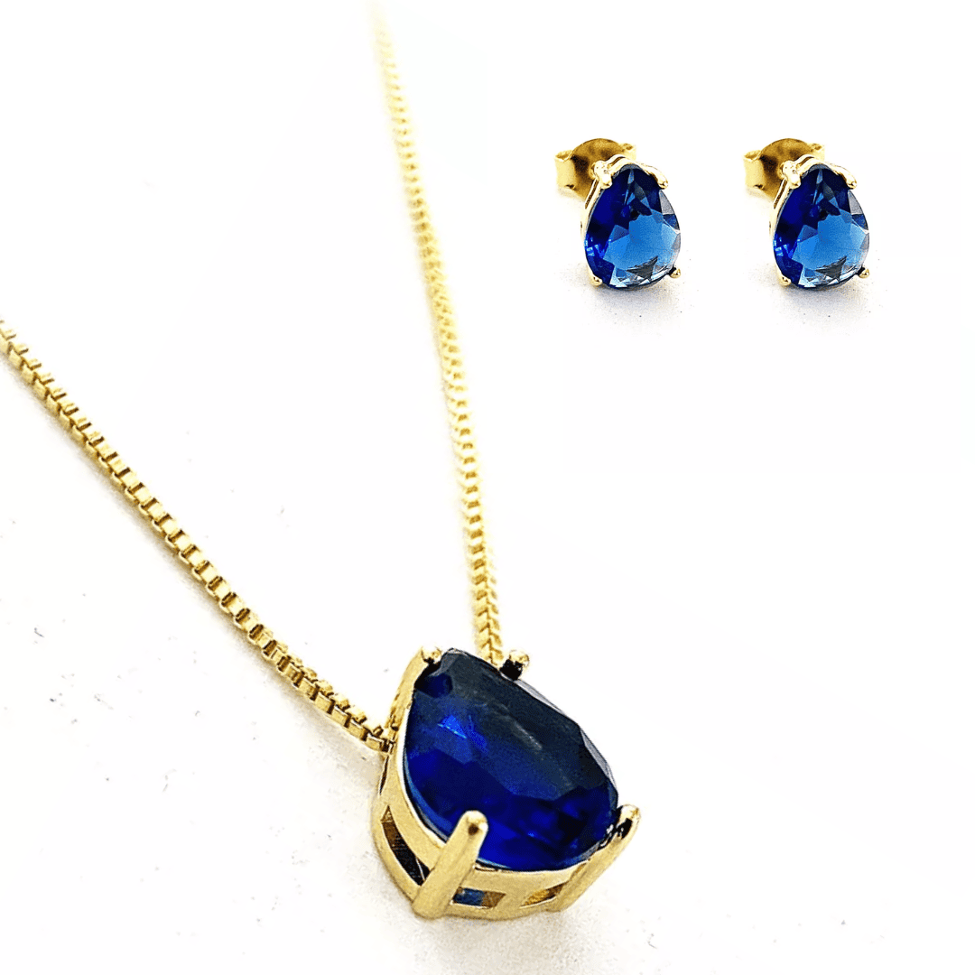 Realce sua beleza com a delicadeza luminosa do nosso Conjunto Cristina! Banhado a ouro, este conjunto encantador apresenta um colar e brincos com pingentes no clássico formato de gota, adornados com zircônia de 6mm de brilho intenso. A combinação do dourado elegante com a zircônia das cores Safira ou Cristal criam um visual sofisticado e atemporal, perfeito para iluminar o seu dia a dia com um toque de graça e sutileza.