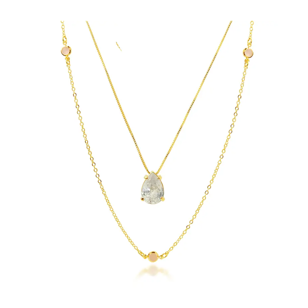 O Colar Isabela é a definição de delicadeza e charme. Composto por dois colares independentes, o mix apresenta uma pedra central lapidada em formato de gota e detalhes sutis em dourado. Esta peça é perfeita para quem busca um acessório versátil e refinado, capaz de transformar qualquer produção em algo especial.