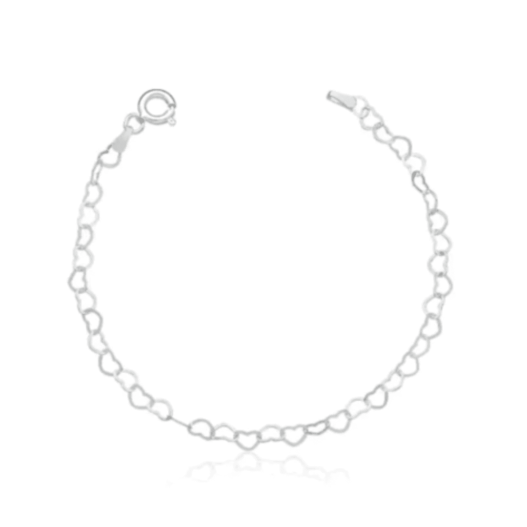 A tornozeleira é adornada com pequenos corações vazados ao longo de toda a sua extensão, criando um visual delicado e cheio de significado. Cada coração é cuidadosamente trabalhado, proporcionando um toque de romantismo e leveza que se destaca de maneira sutil e elegante.